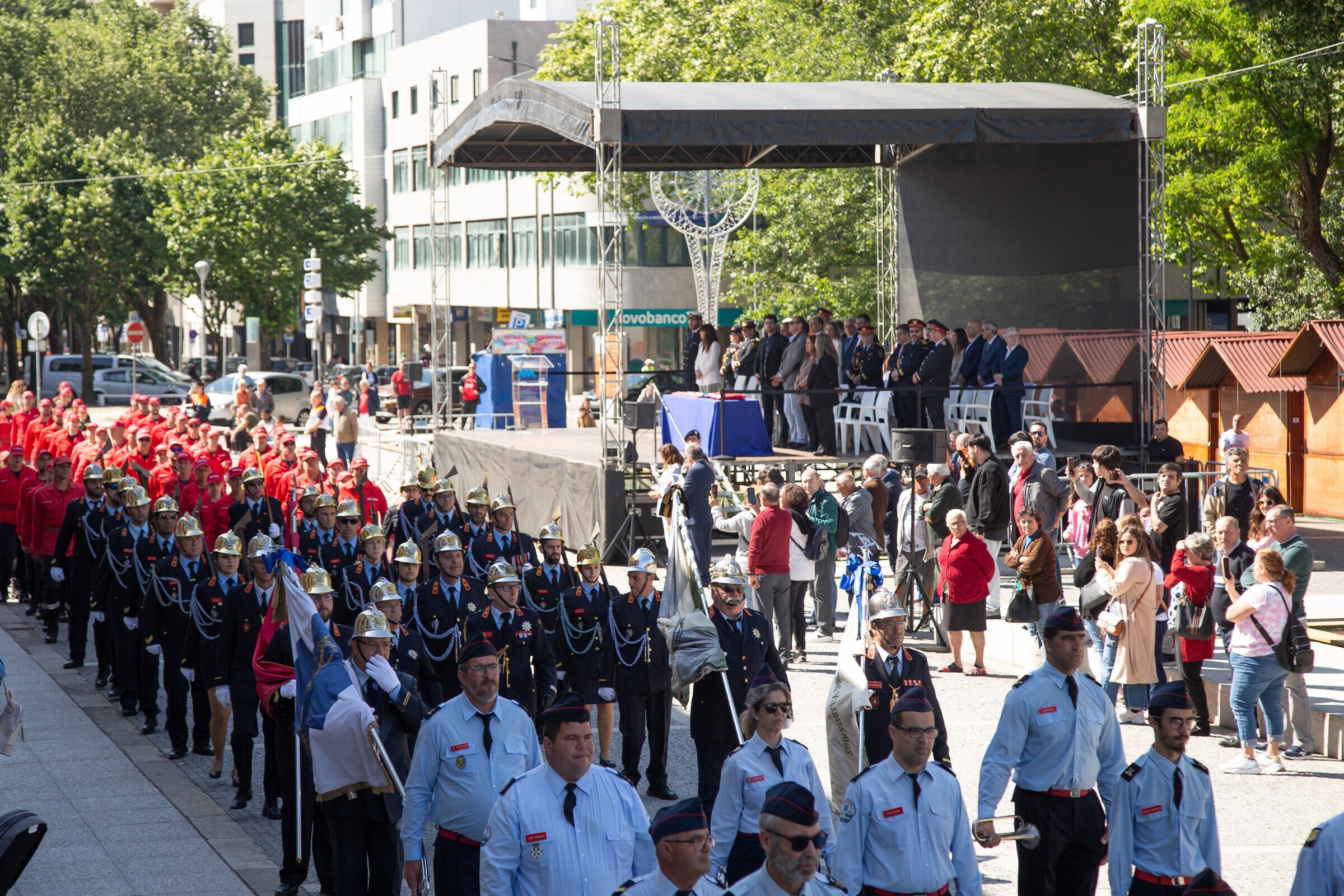 Desfiles de fanfarra, receção às entidades e a revista das forças em parada foram alguns dos momentos desta sessão em que marcaram presença cerca de uma centena de bombeiros das quatro corporações do concelho: Bombeiros Voluntários de Matosinhos-Leça, de S. Mamede de Infesta, de Leixões e de Leça do Balio.