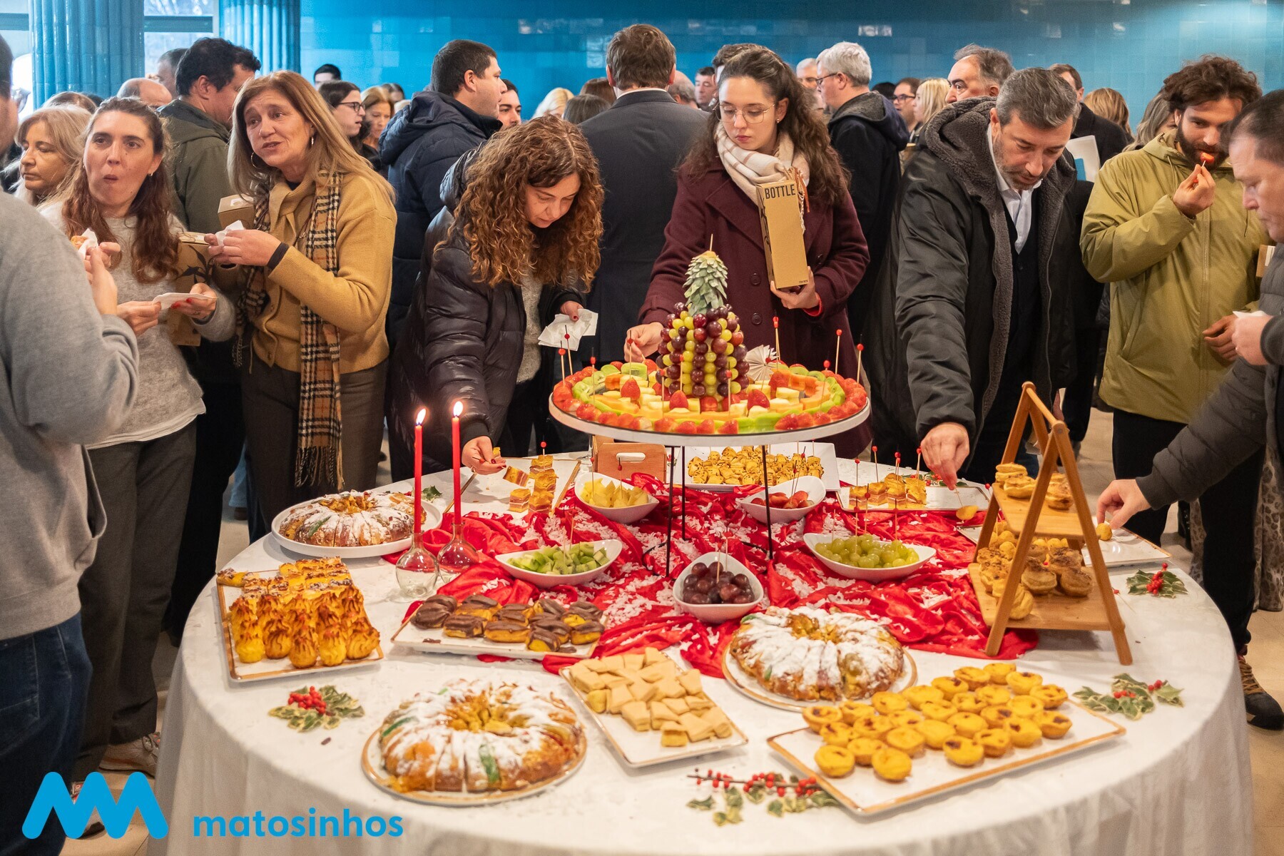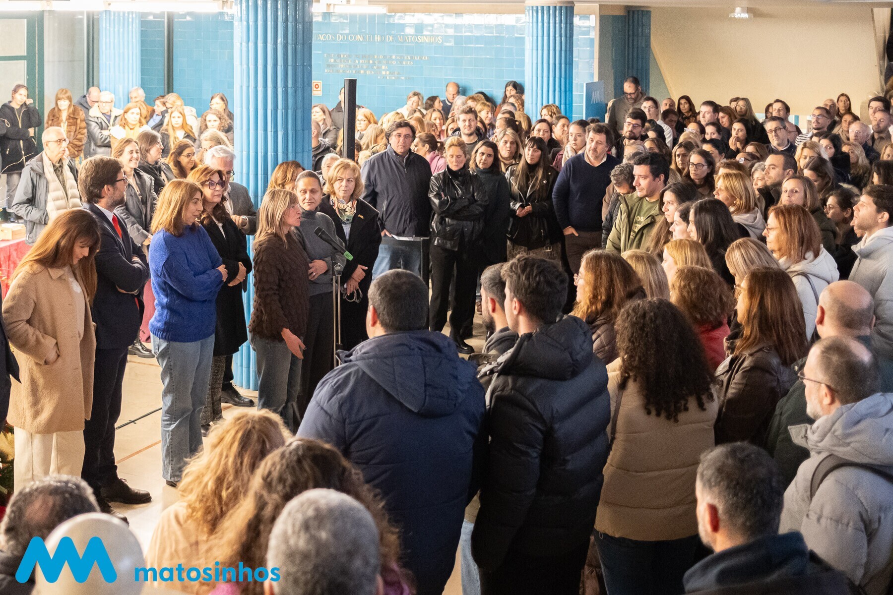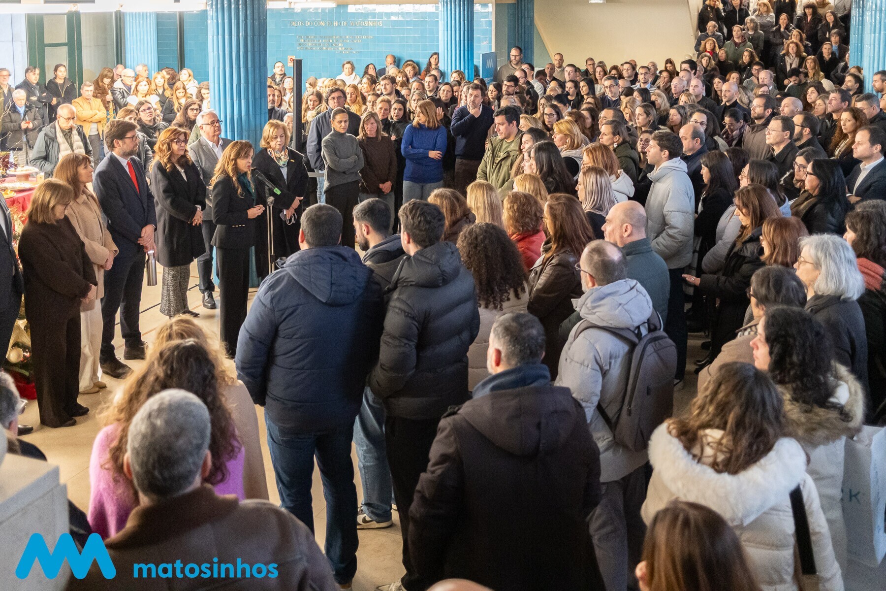 O átrio do Edifício dos Paços do Concelho recebeu ontem a tradicional sessão de Boas Festas aos funcionários da Câmara de Matosinhos e das empresas municipais Matosinhos Sport e MatosinhosHabit por parte do Executivo Municipal e da Comissão de Trabalhadores da Autarquia.