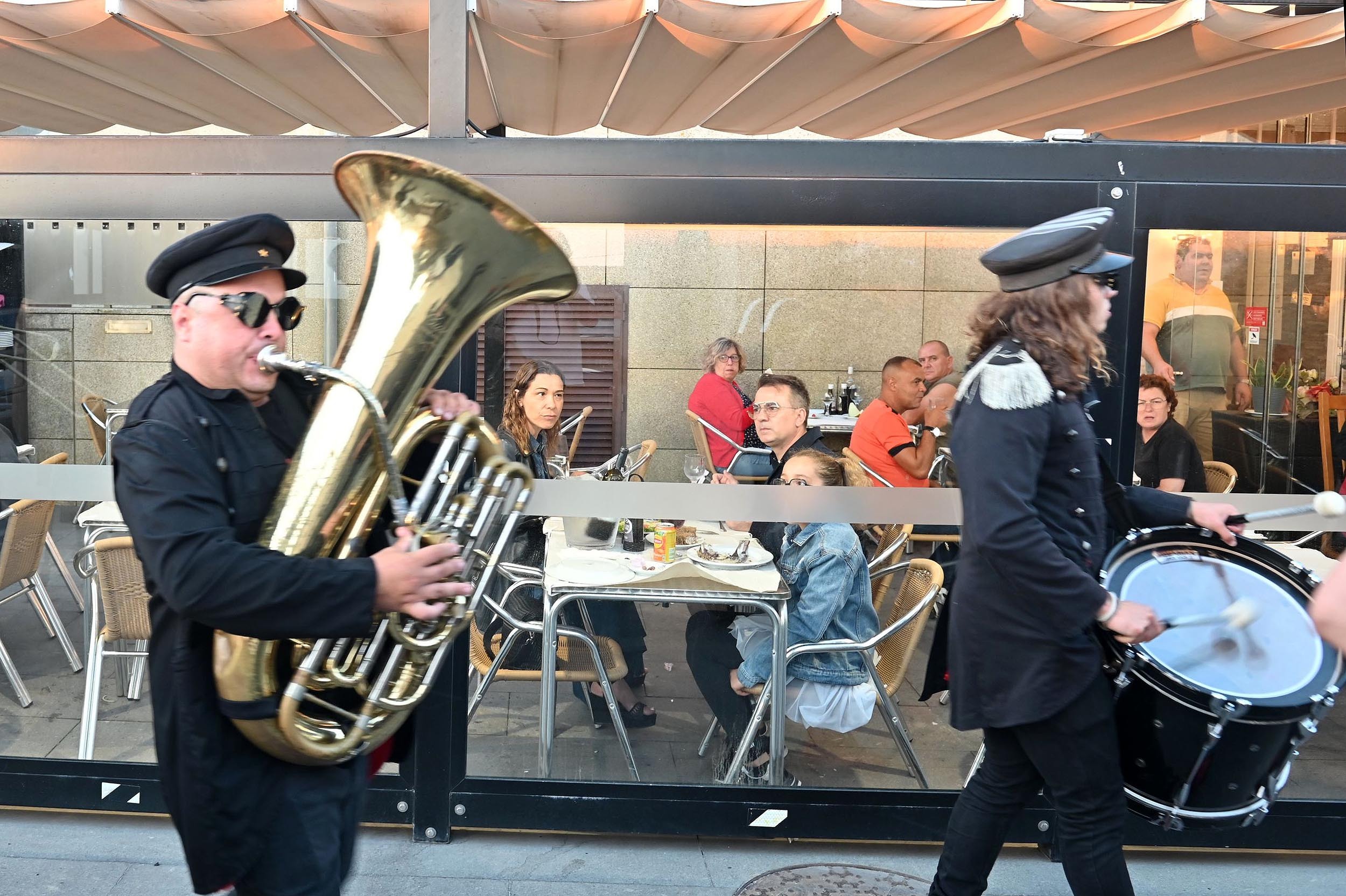 Ontem, a animação musical ficou a cargo da “Kaústica”, uma banda oriunda de Águeda, e constituída por 11 músicos profissionais com formação nas áreas do jazz, da música erudita e das músicas do mundo. Pelas ruas de Angeiras interpretaram temas, na sua maioria, originais com exceção de alguns arranjos. Tanto os temas originais como os arranjos foram escritos por elementos da Káustika. No seu espetáculo de rua, “punk filarmónico”, foram notadas as influências da música balcânica misturada com um pouco de rock, punk, improvisação e claro, o filarmónico.