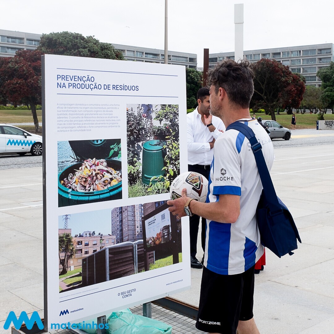 Ainda no âmbito das comemorações do Dia Mundial do Ambiente, foi inaugurada a exposição ao ar livre “O Seu Gesto Conta”, patente na marginal de Matosinhos até domingo, 8 de junho. A mostra fotográfica, composta por imagens captadas em diversos pontos do concelho, destaca soluções inovadoras já implementadas no território, como a compostagem doméstica, a recolha seletiva porta-a-porta, os contentores para resíduos verdes ou a valorização de beatas.