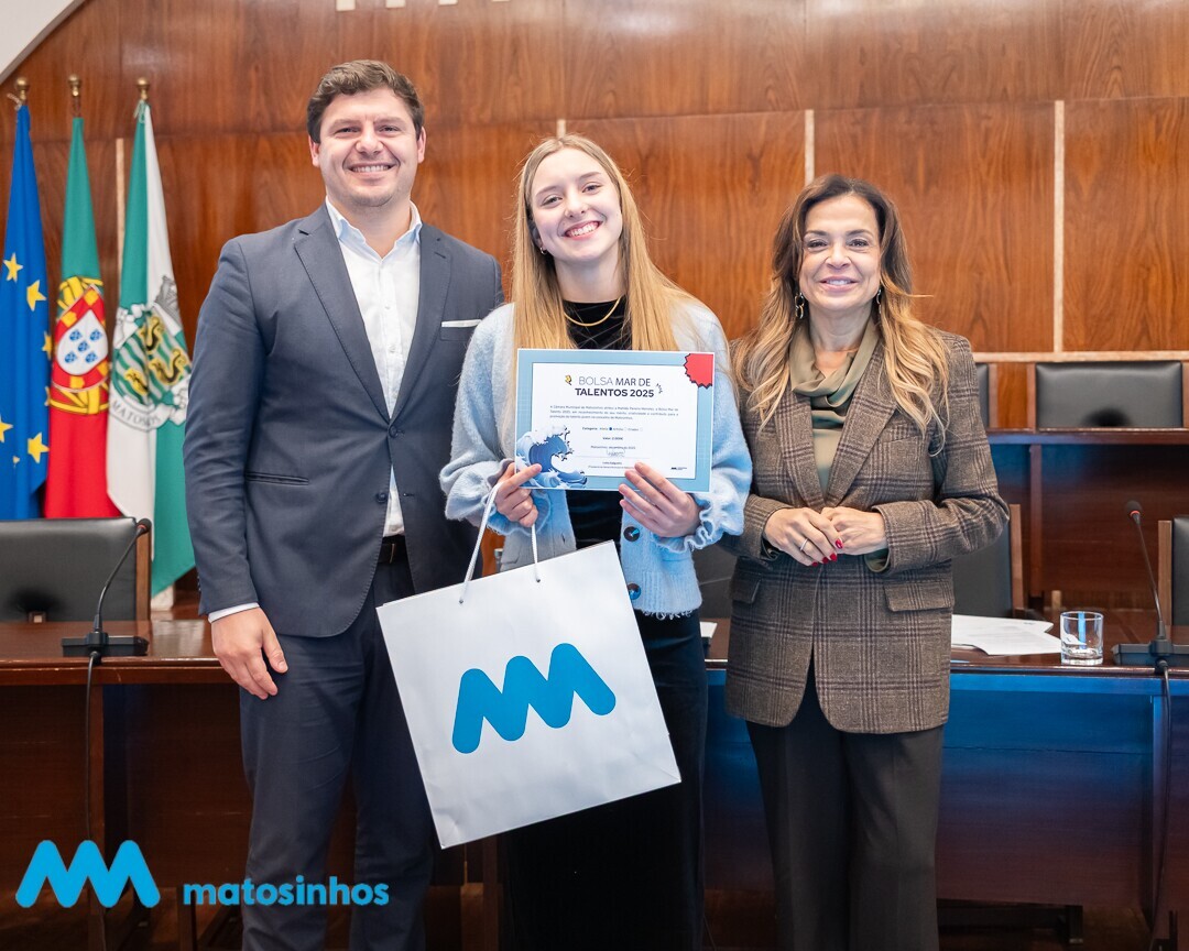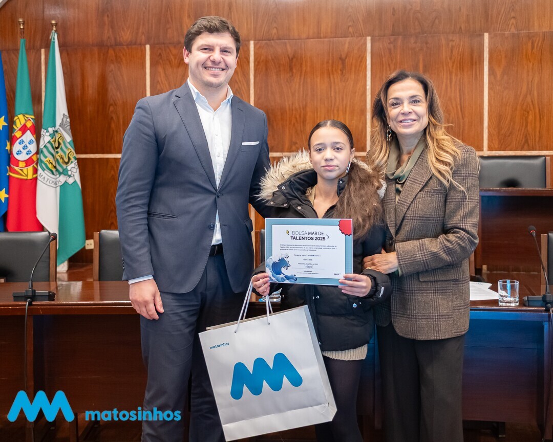 A sala de sessões pública da Câmara Municipal de Matosinhos foi palco na passada segunda-feira de uma cerimónia de entrega dos certificados da Bolsa Mar de Talento 2025, uma iniciativa municipal que reconhece, apoia e promove o talento jovem do concelho nas áreas do desporto, das artes e da criação.