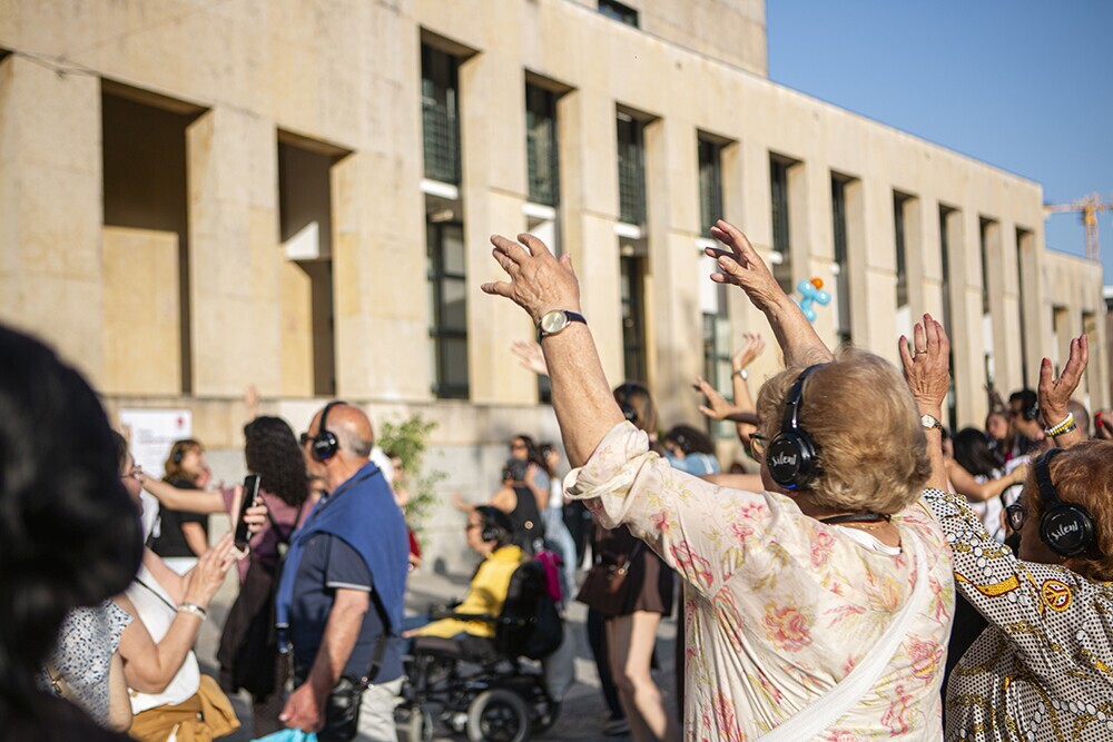 O conceito inovador da festa silenciosa – em que a música é ouvida através de headphones distribuídos à entrada – proporcionou uma experiência única de dança e partilha, num ambiente inclusivo e intergeracional.