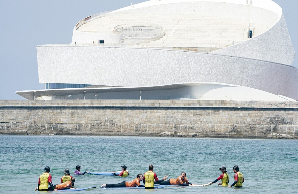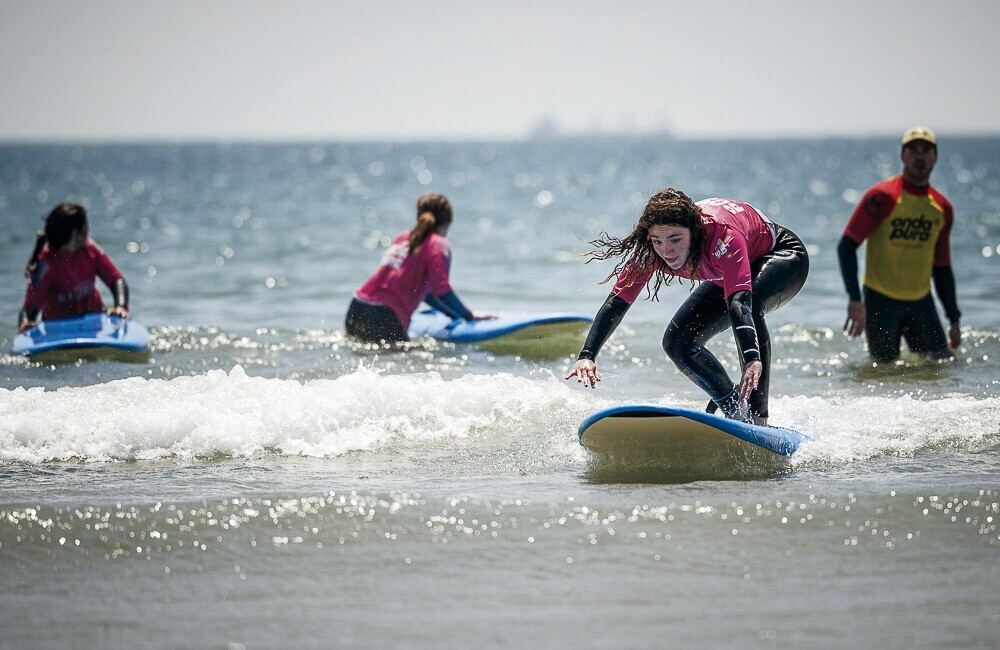 Batismos de surf e surf adaptado na praia de Matosinhos