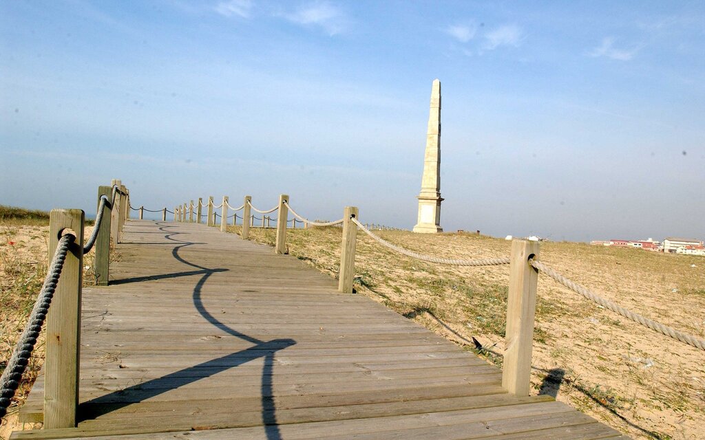 Neste extenso areal, um obelisco de pedra comemora o desembarque, em 1831, das tropas liberais, comandadas por D. Pedro IV, que marca o fim do regime absolutista em Portugal.