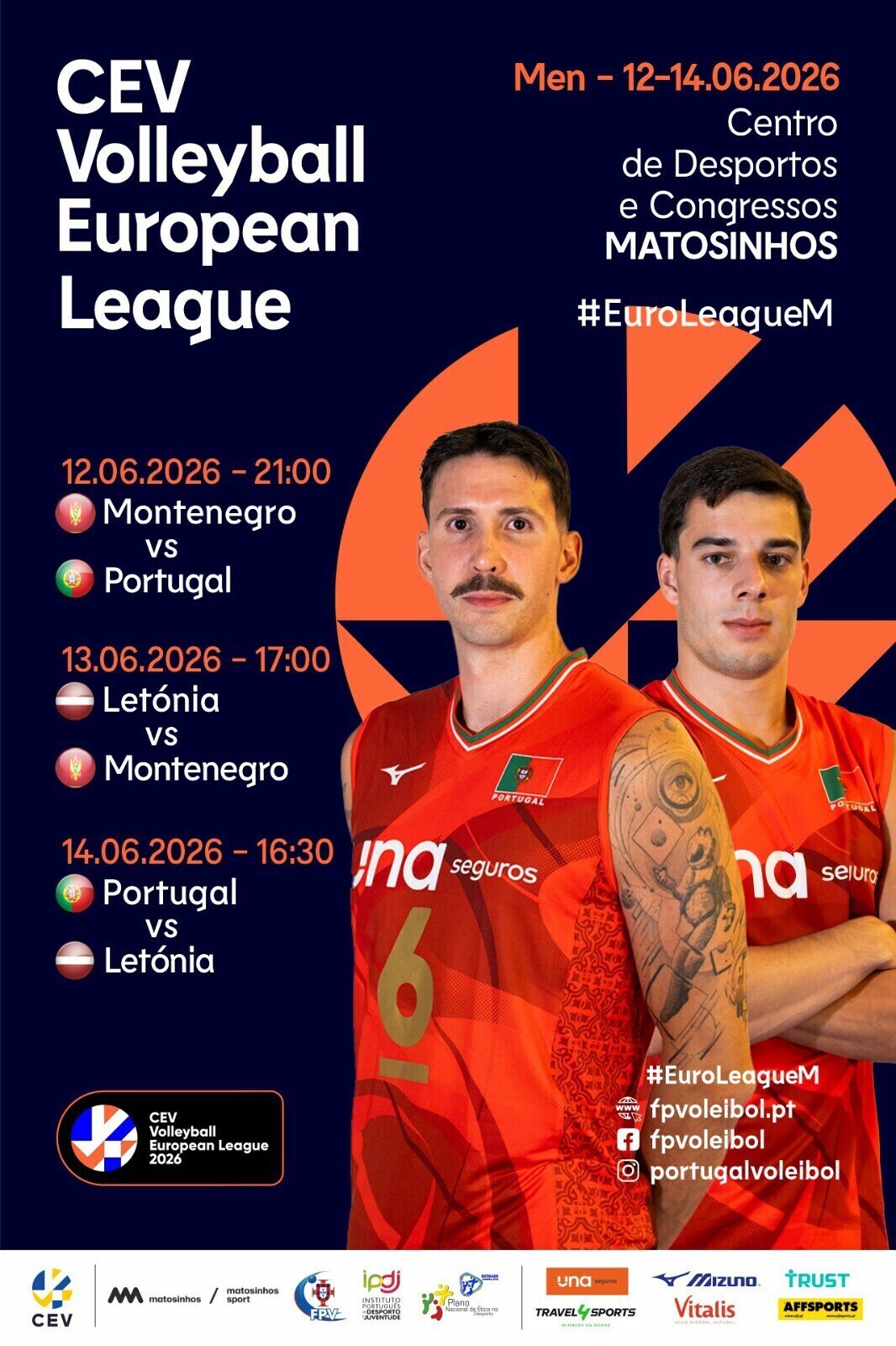 Adicionar a calendário2026-06-12 21:00:002026-06-14 16:30:00Europe/LisbonCEV Volleyball European League 2026Portugal, Letónia e MontenegroCentro de Desportos e Congressos de Matosinhos