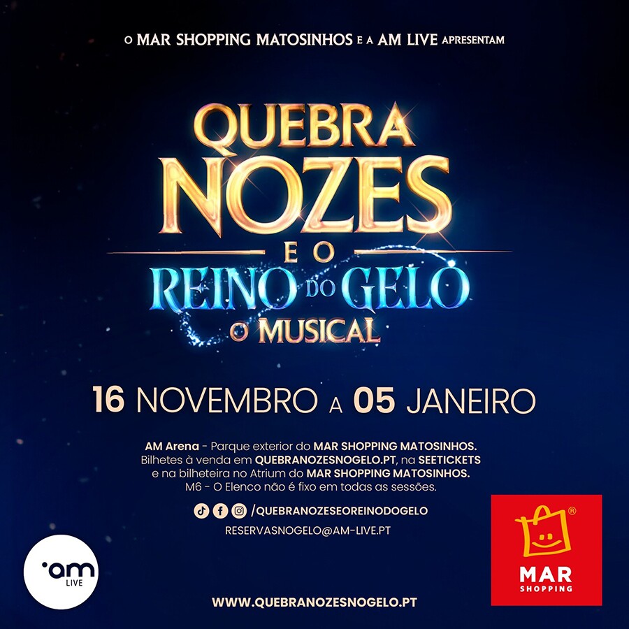 Adicionar a calendário2024-11-16 11:00:002025-01-05 18:00:00Europe/LisbonQuebra-Nozes e o Reino do GeloMusical com Angie Costa, Ângelo Rodrigues e Rita RochaMar Shopping, Leça da Palmeira