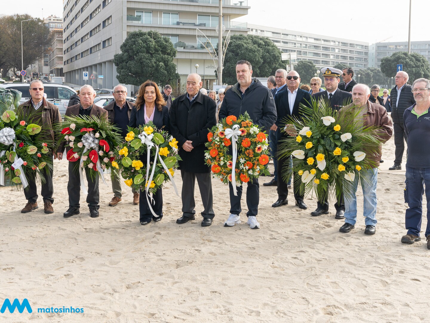 Seguiu-se uma romagem até à praia de Matosinhos, onde foram depositadas simbolicamente coroas de flores junto à escultura “Tragédia do Mar”, da autoria do artista José João de Brito.