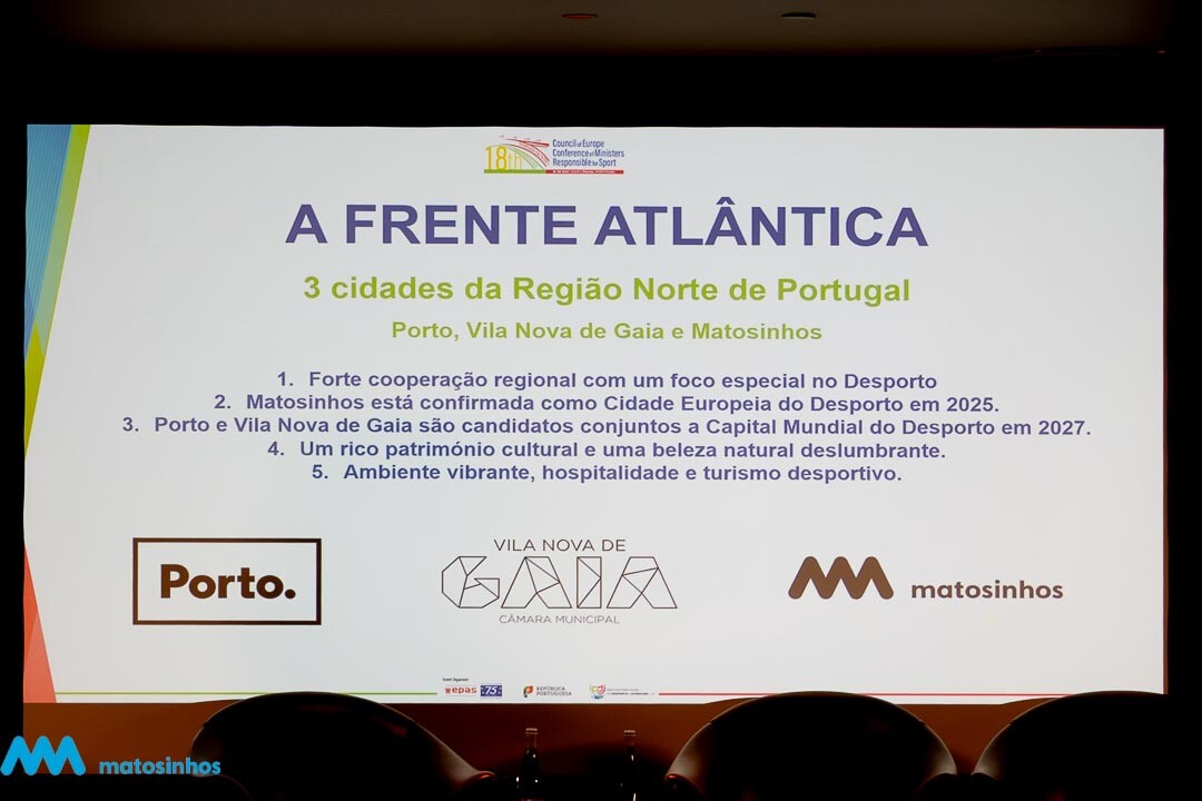 De 8 a 10 de outubro, a Frente Atlântica composta pelos municípios de Matosinhos, Porto e Gaia, vai receber a 18.ª Conferência de Ministros do Desporto do Conselho da Europa.