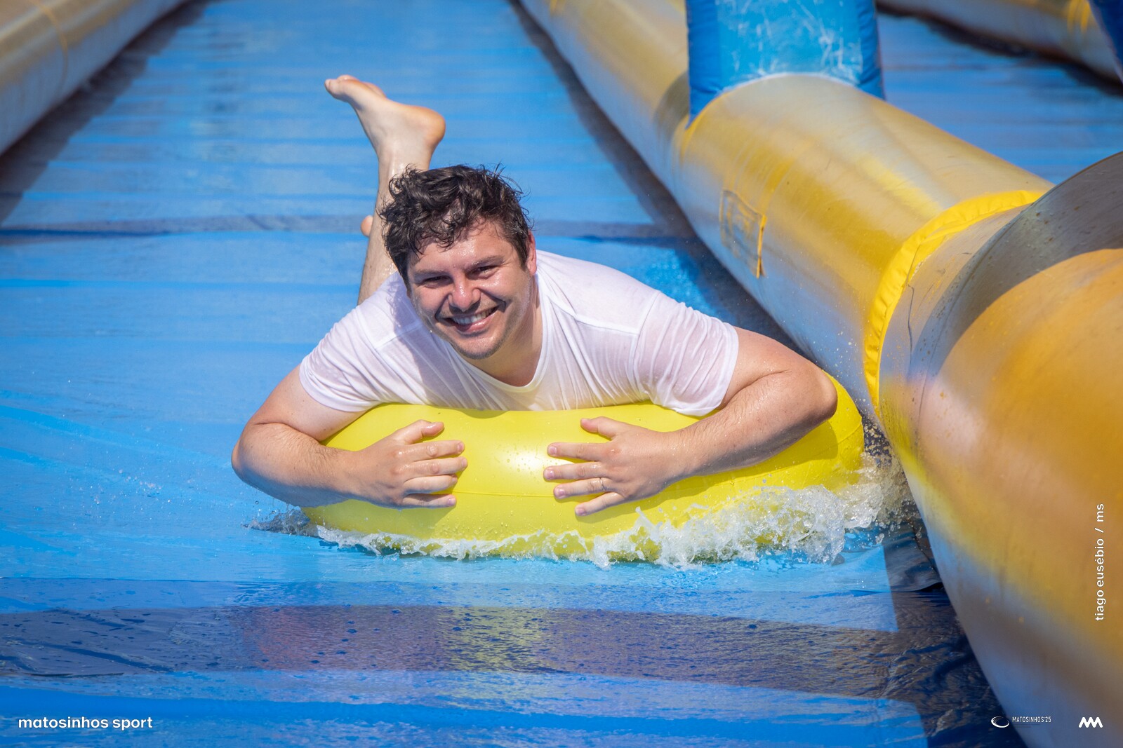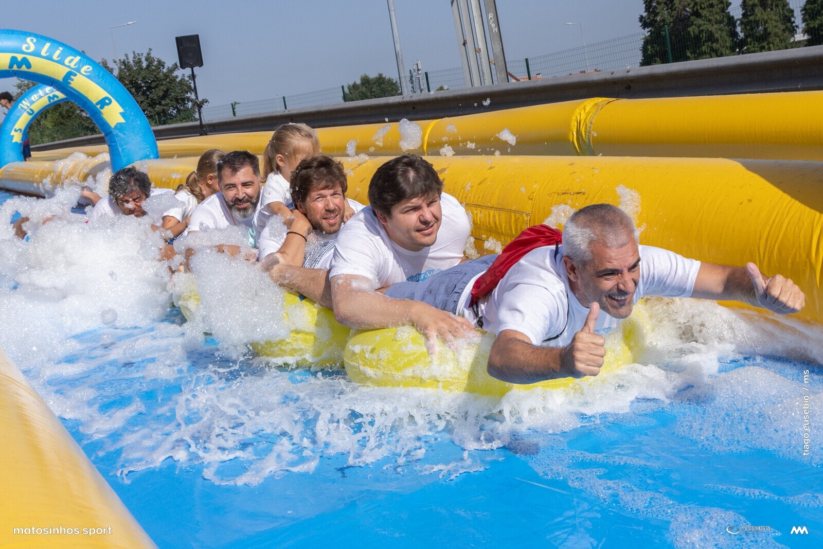 Na inauguração oficial do “Water Slide Summer” marcaram presença Carlos Mouta, vice-presidente da Câmara de Matosinhos, Nuno Matos, vereador do Desporto, e Leonardo Fernandes, presidente da União das Freguesias de S. Mamede de Infesta e Senhora da Hora.