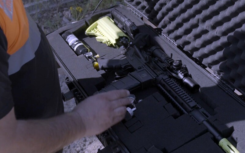 Para ninhos localizados acima de 20 metros de altura, recorre-se a armas de ar comprimido do tipo softball, que utilizam projéteis de inseticida.