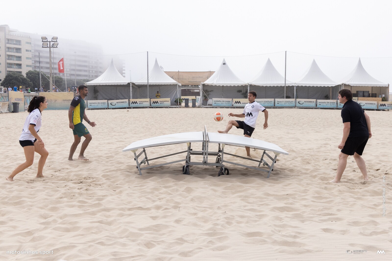 Esta modalidade, recente e com uma popularidade crescente, joga-se com uma bola de futebol numa mesa parecida com a do ténis de mesa, embora curva e com rede fixa, podendo ser jogada em singular ou em pares.