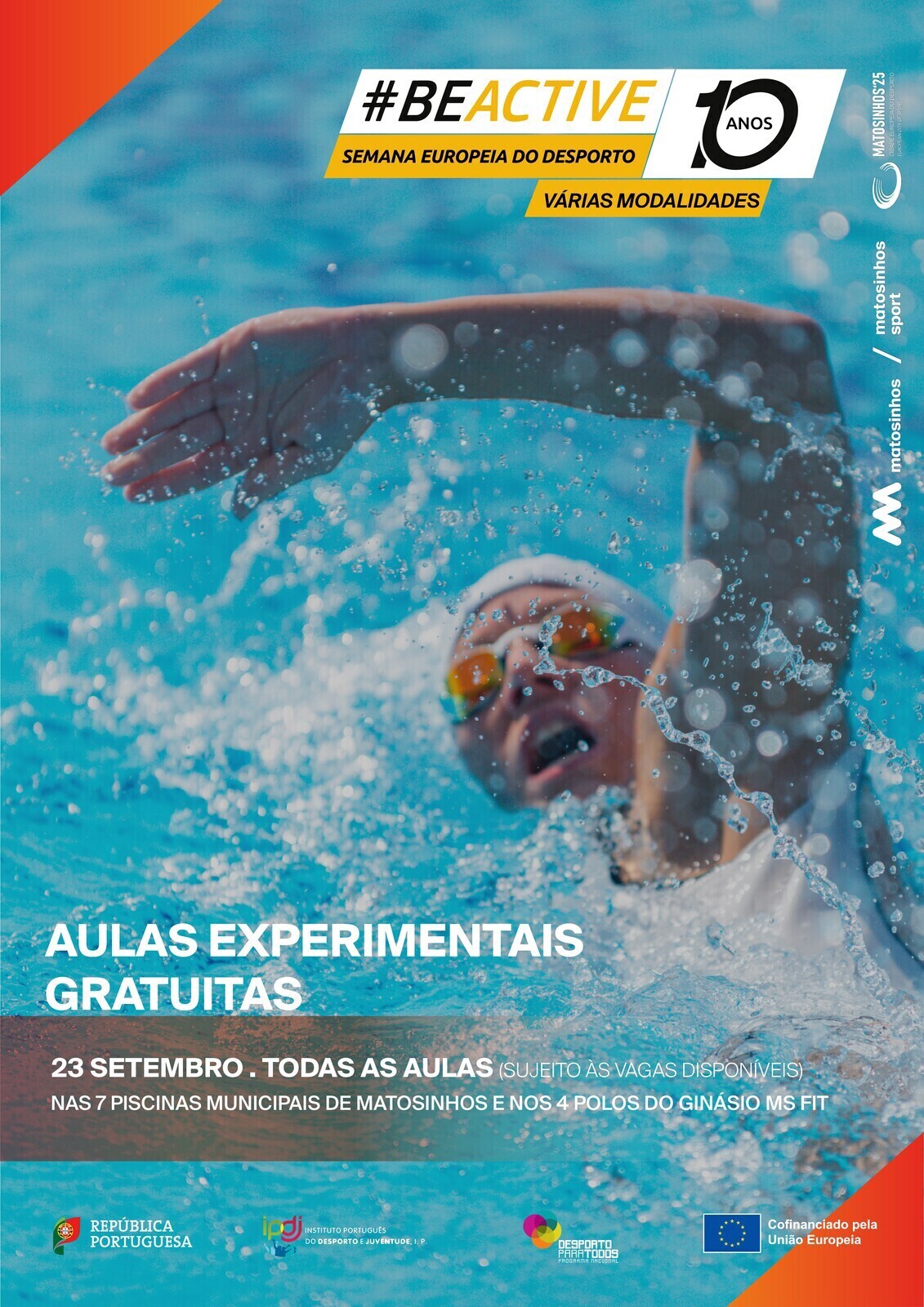Todas as aulas das 7 piscinas municipais e dos 4 polos do ginásio MS Fit disponiveis para aula experimental (sujeito às vagas disponíveis).