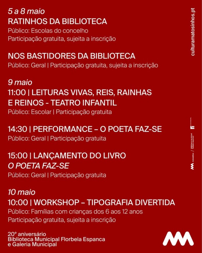 Adicionar a calendário2025-05-05 10:00:002025-05-10 17:30:00Europe/LisbonBiblioteca Municipal Florbela Espanca e Galeria Municipal20.º AniversárioBiblioteca Municipal Florbela Espanca