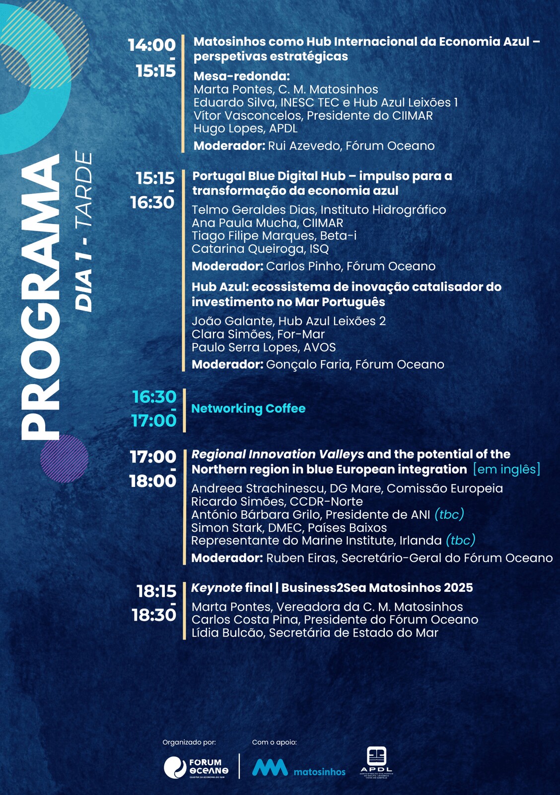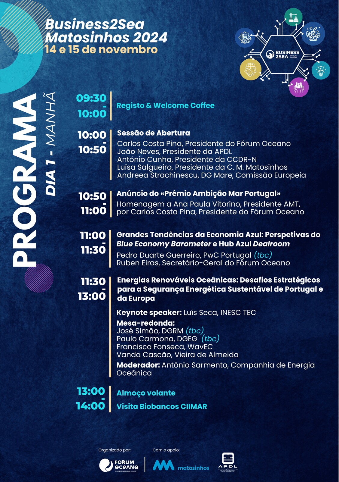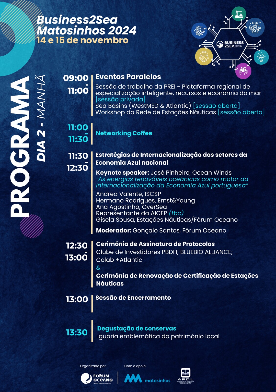 Adicionar a calendário2024-11-14 09:30:002024-11-15 13:30:00Europe/LisbonBusiness2SeaDigitalização e Energias Renováveis OceânicasTerminal de Cruzeiros do Porto de Leixões