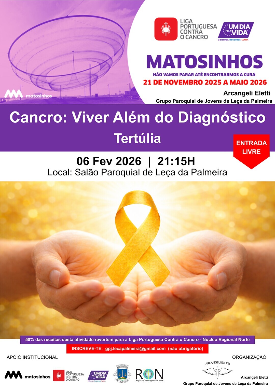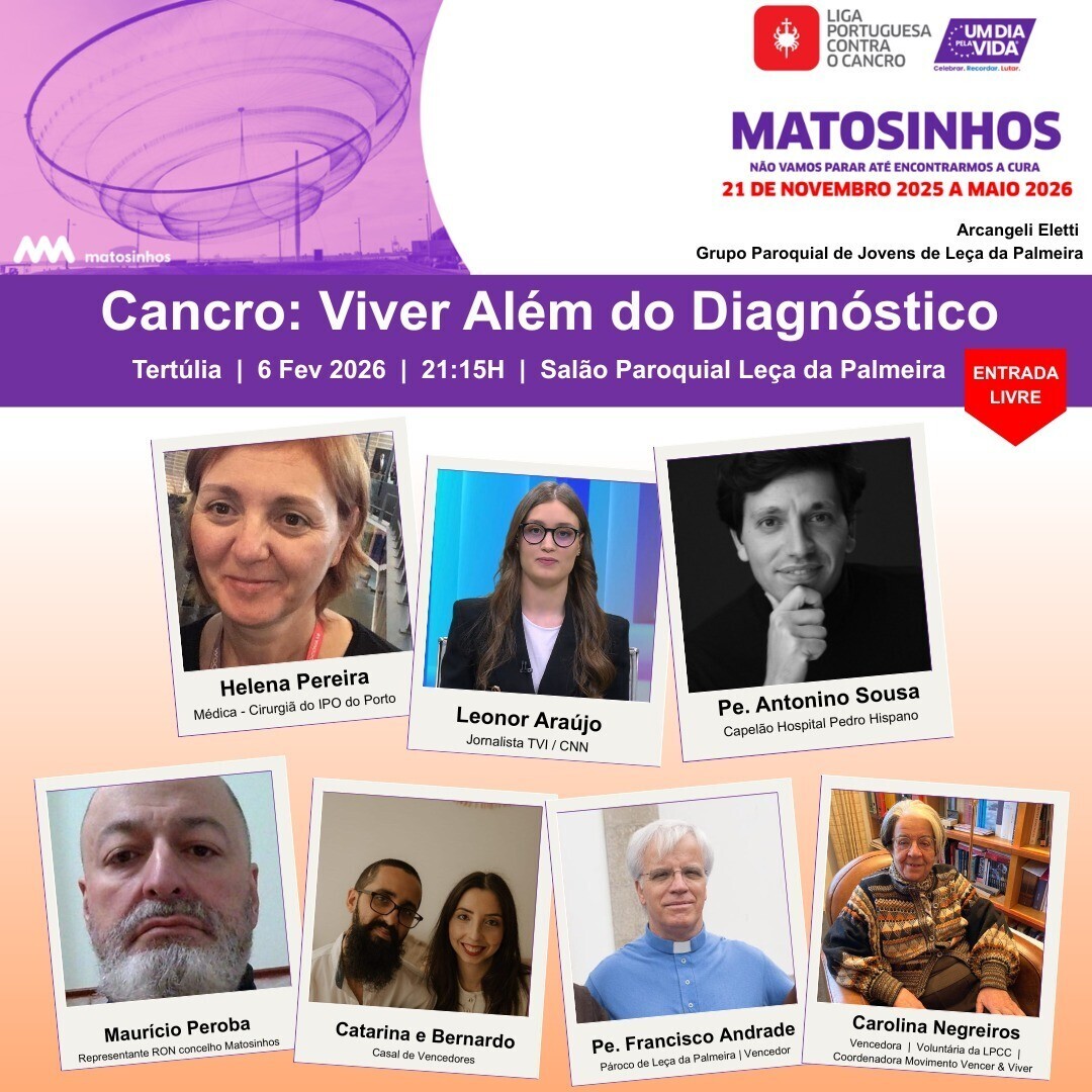 Adicionar a calendário2026-02-06 21:15:002026-02-06 21:15:00Europe/LisbonCancro: Viver Além do DiagnósticoTertúlia organizada pelo grupo Arcangeli ElettiSalão Paroquial de Leça da Palmeira