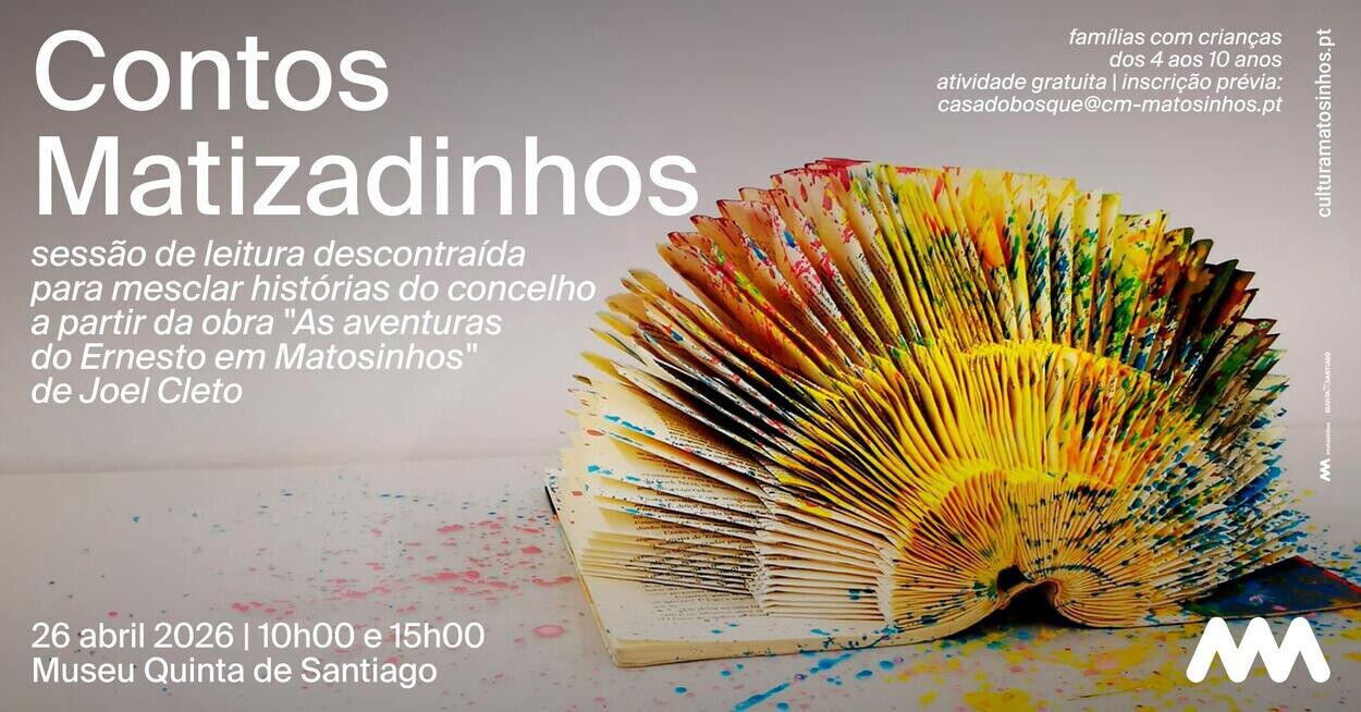 O Museu Quinta de Santiago, tutela da Câmara Municipal de Matosinhos, acolhe, no dia 26 de abril, a iniciativa Contos Matizadinhos – sessões de leitura descontraída e dramatizada para mesclar histórias do Concelho, com sessões às 10h00 e às 15h00, de entrada gratuita.