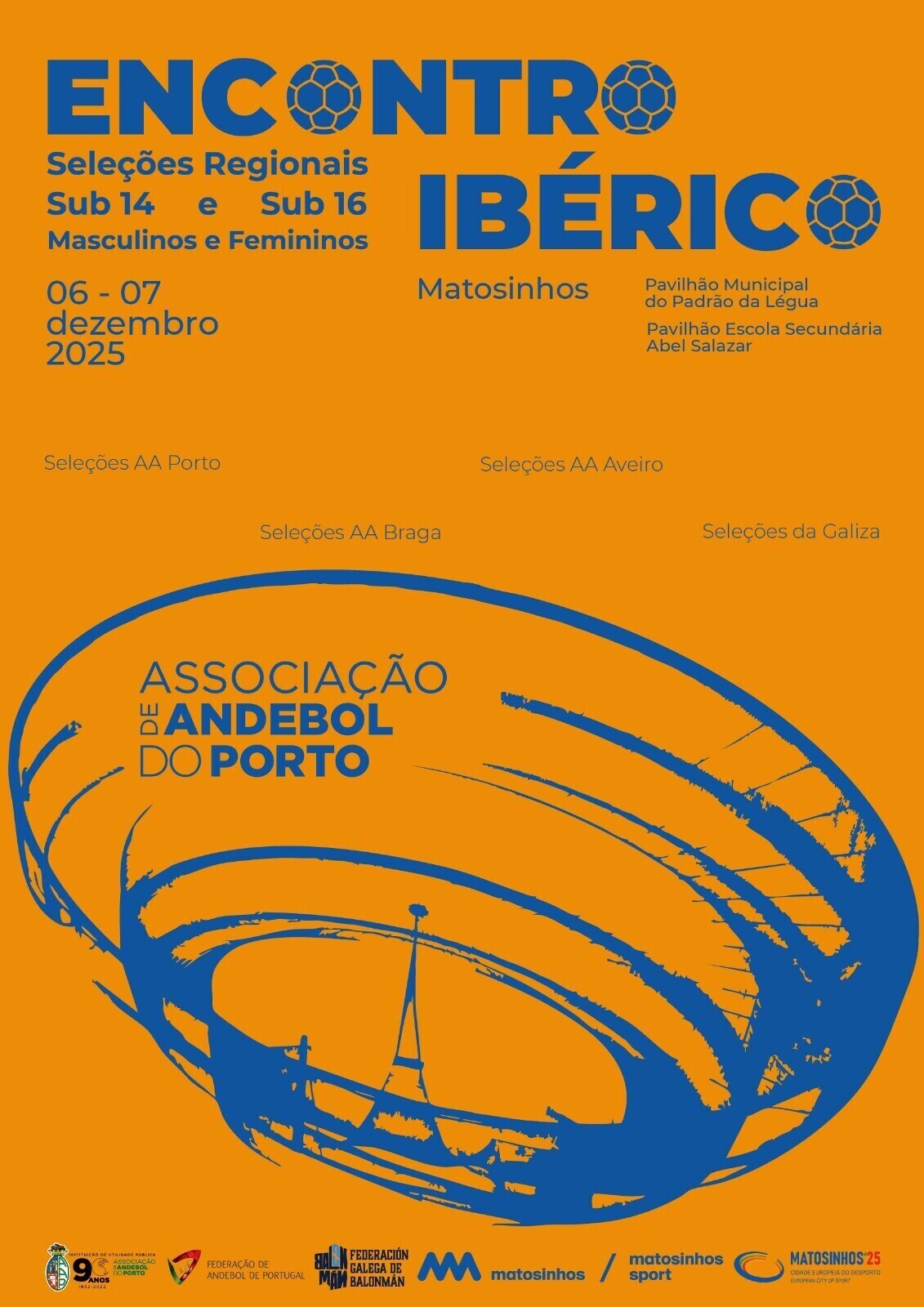 Adicionar a calendário2025-12-06 09:00:002025-12-07 20:00:00Europe/LisbonEncontro Ibérico de AndebolSeleções Regionais sub14 e sub16Pavilhão Municipal do Padrão da Légua e Pavilhão Escola Secundária Abel Salazar