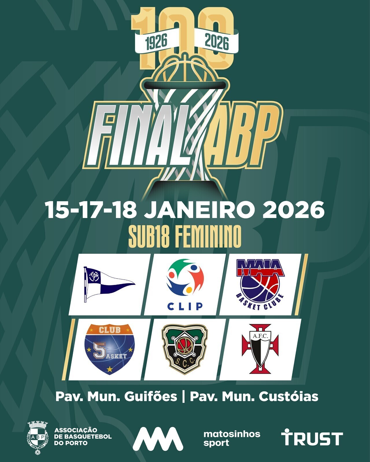 Enquanto os quartos de final femininos decorrem no Municipal de Guifões, todas as restantes partidas destas Finais ABP Sub18 terão como cenário o Municipal de Custóias.