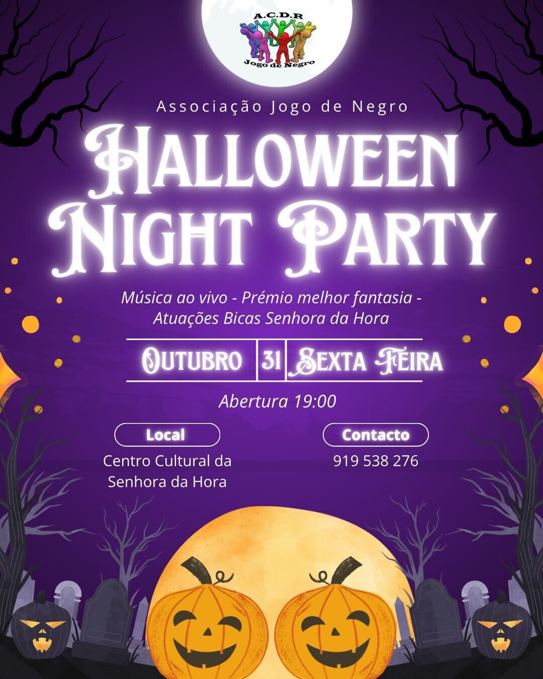 Adicionar a calendário2025-10-31 19:00:002025-10-31 19:00:00Europe/LisbonHalloween Night PartyMúsica ao vivo - Prémio melhor fantasia - Atuações Bicas Senhora da HoraCentro Cultural da Senhora da Hora
