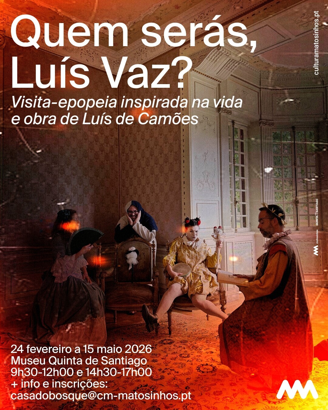 Adicionar a calendário2026-02-24 09:30:002026-05-15 17:00:00Europe/LisbonQuem serás, Luís Vaz?Visita-epopeia inspirada na vida e obra de Luís de CamõesMuseu Quinta de Santiago