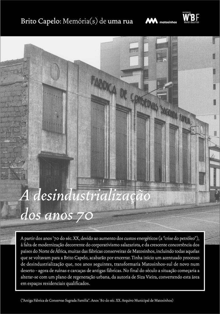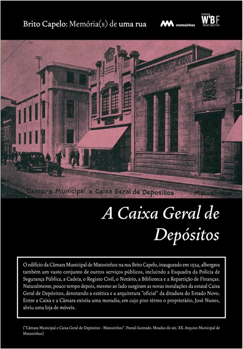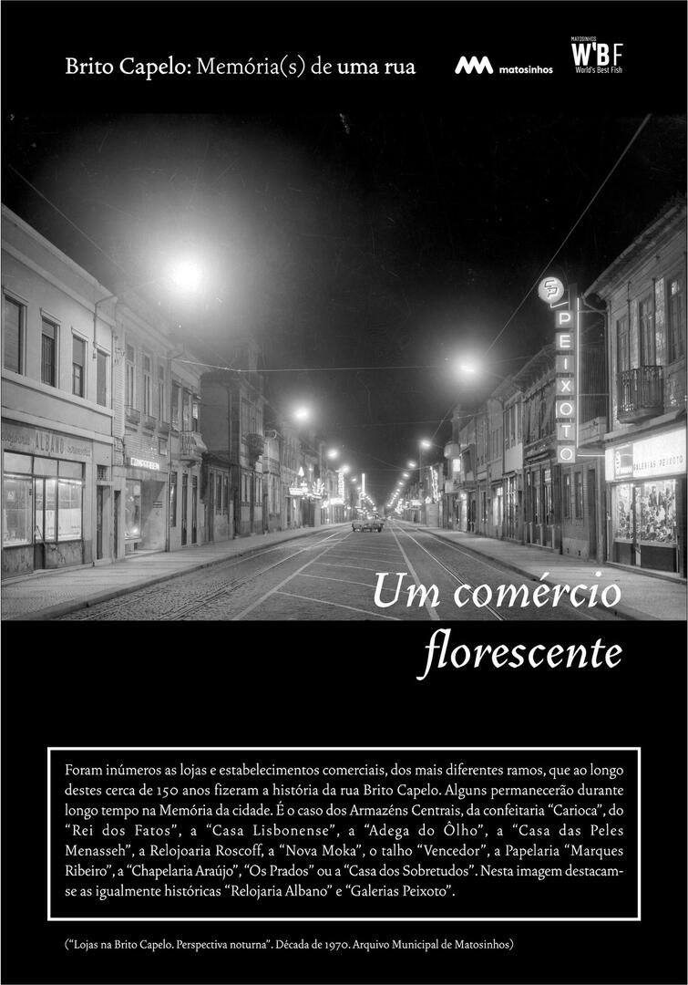 Inicialmente designada Rua do Juncal de Cima, Brito Capelo veio a transformar-se no eixo estruturante de Matosinhos, acolhendo o comércio e a indústria, os cafés e os hotéis, o carro americano, o comboio, o metro, a biblioteca ou os paços do concelho.